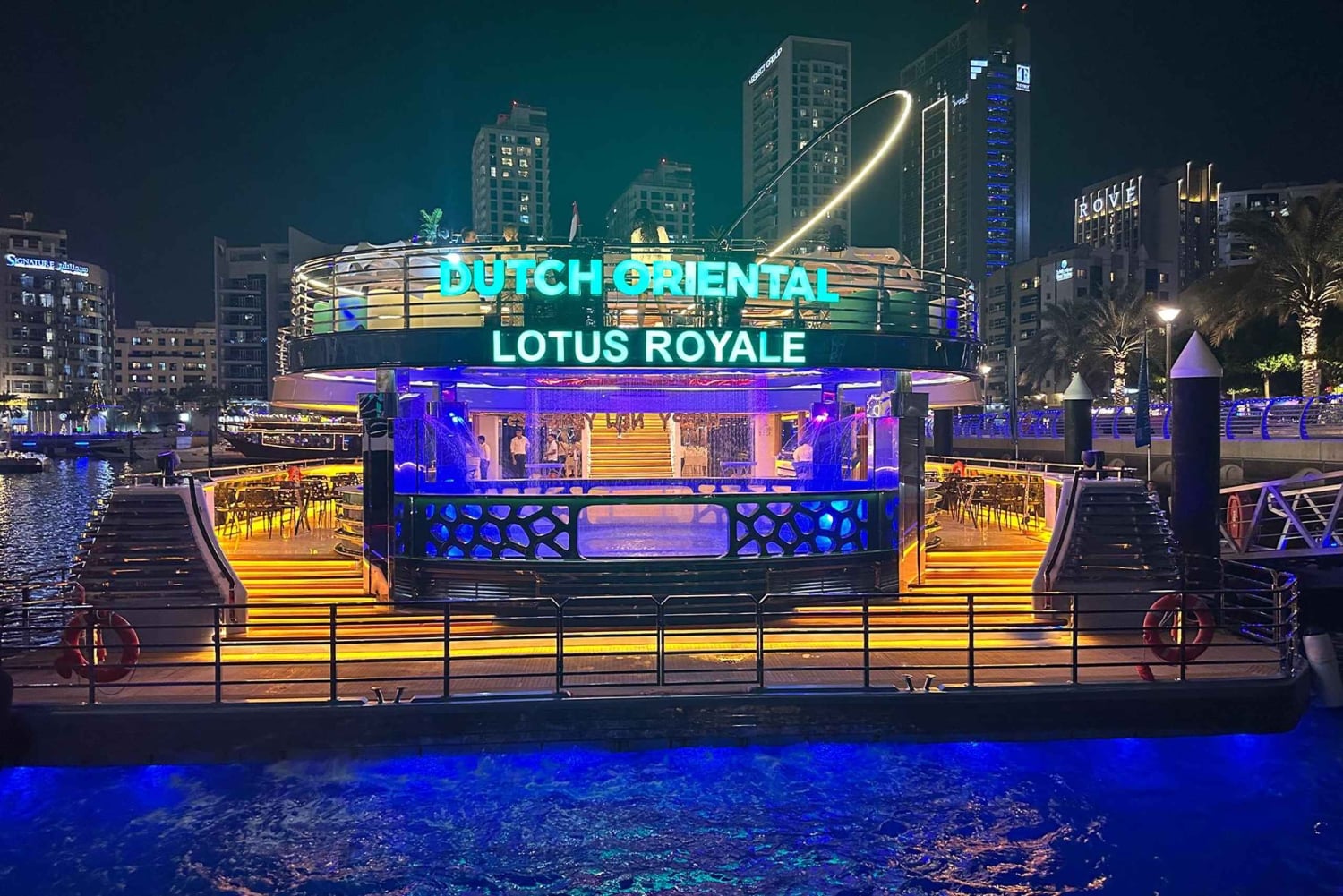 Vier oudejaarsavond in stijl op het grootste megajacht - Lotus Royale in Dubai. Geniet van een buffetdiner, onbeperkt drankjes, live entertainment en uitzicht op het nieuwjaarsvuurwerk vanaf het water.