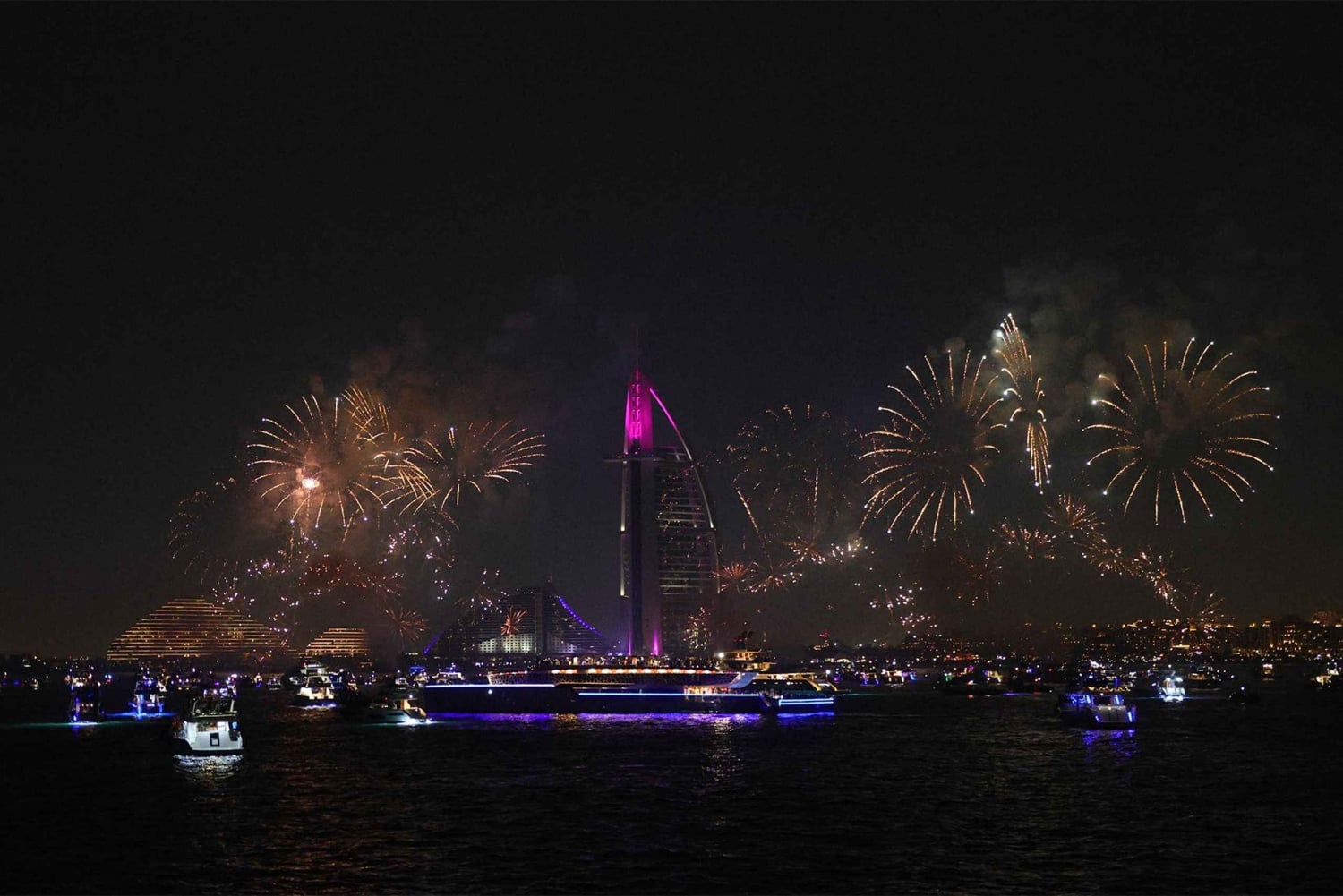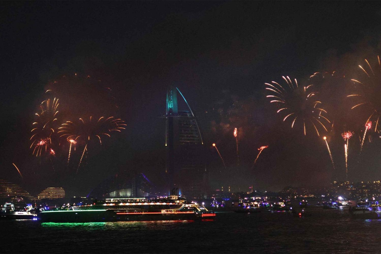 Dubai: NYE MegaYacht Lotus Royale vuurwerk & dinercruise