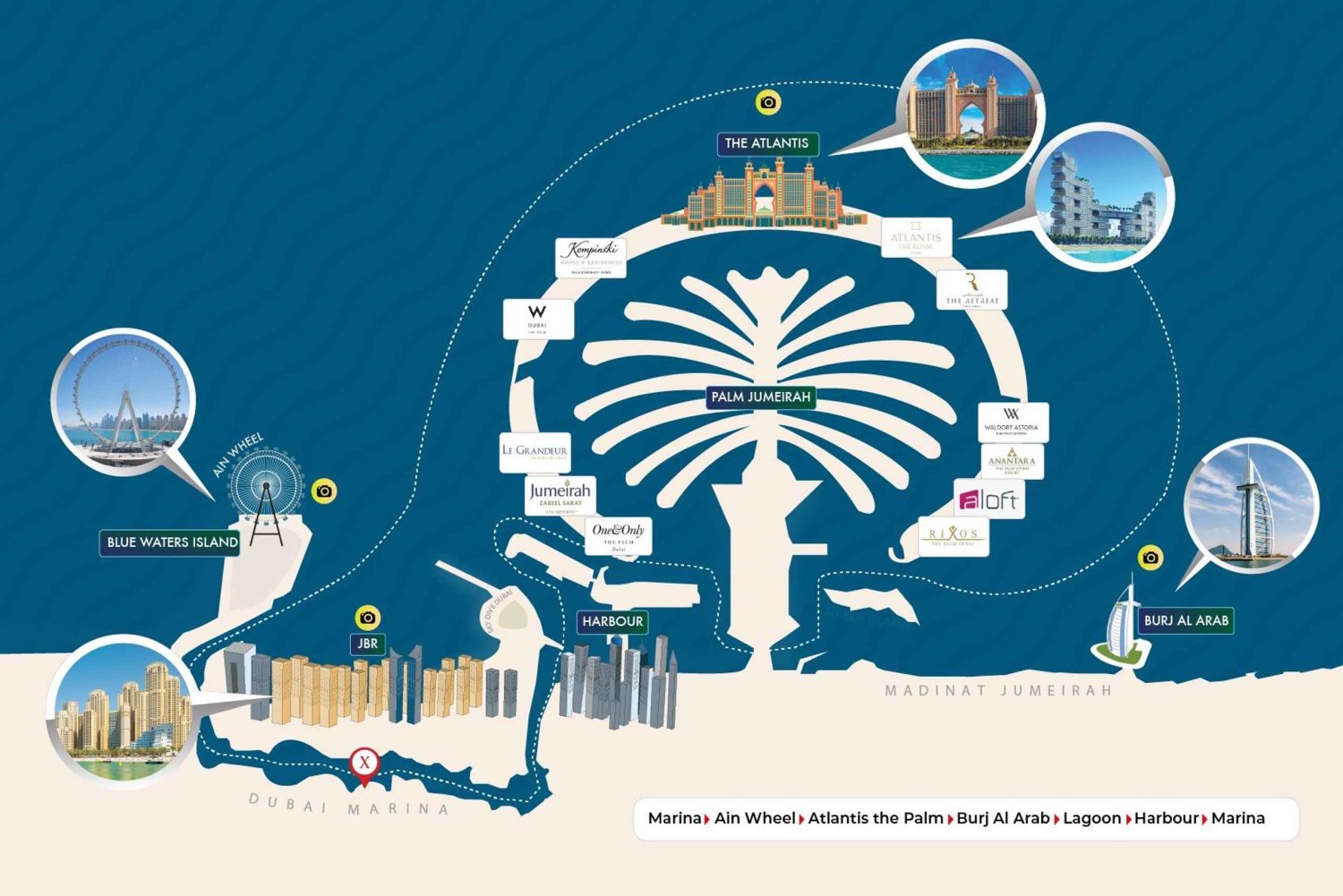• Ontdek iconische bezienswaardigheden zoals Dubai Eye, Palm Jumierah en de Burj Al Arab