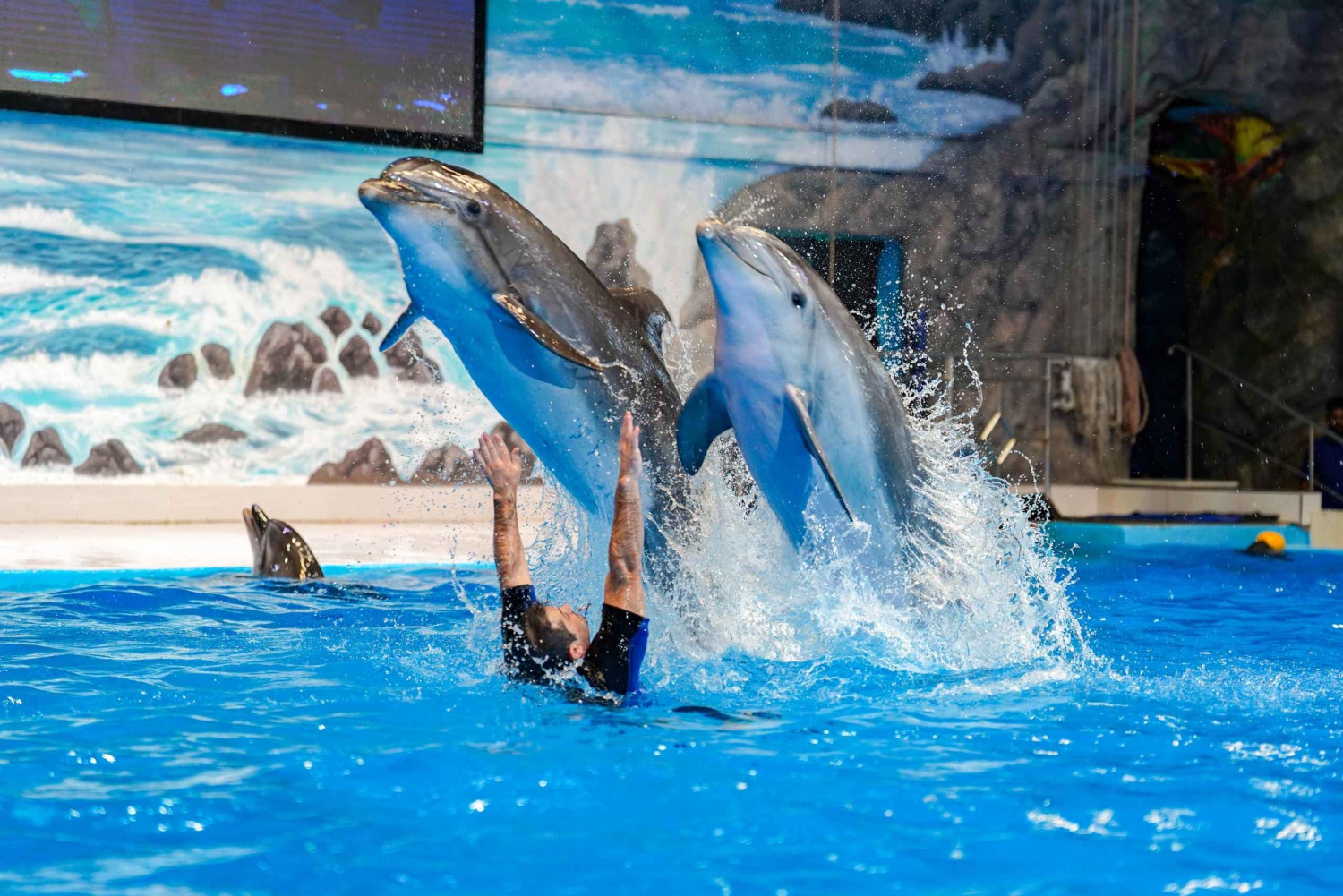 Utforsk dyreverdenen på Dubai Dolphinarium. Se de fengslende delfin- og selforestillingene, og gjør opplevelsen enda bedre ved å velge et VIP-alternativ eller et alternativ som inkluderer et eksotisk fugleshow.