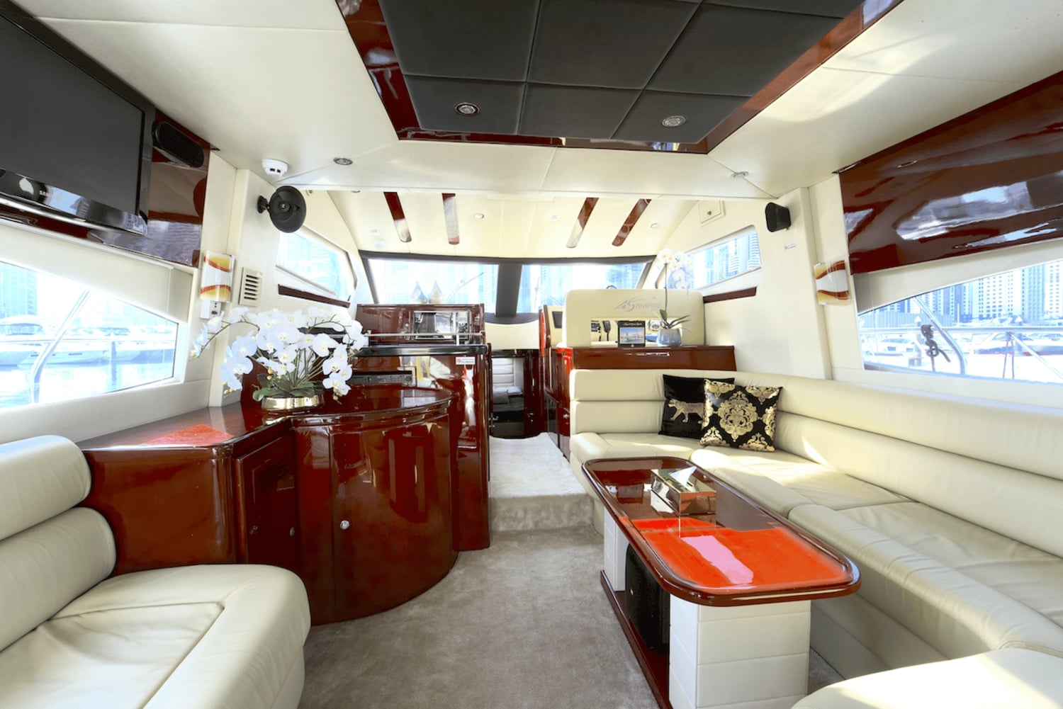 Gå ombord i denne stilige yachten og ta inn ikoniske landemerker som Burj Al Arab, Atlantis The Palm, Dubai Marina, Ain Dubai, Sky Dive Dubai og mange andre fra din egen private yacht mens du blir bortskjemt med gratis drinker og eksepsjonell service.