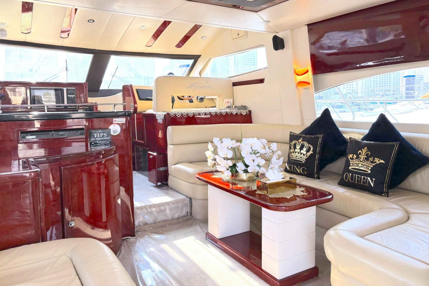 Lag minner på denne luksuriøse private 50ft yachtcruisen og se Dubai skyline forvandle seg til et magisk sted etter solnedgang.