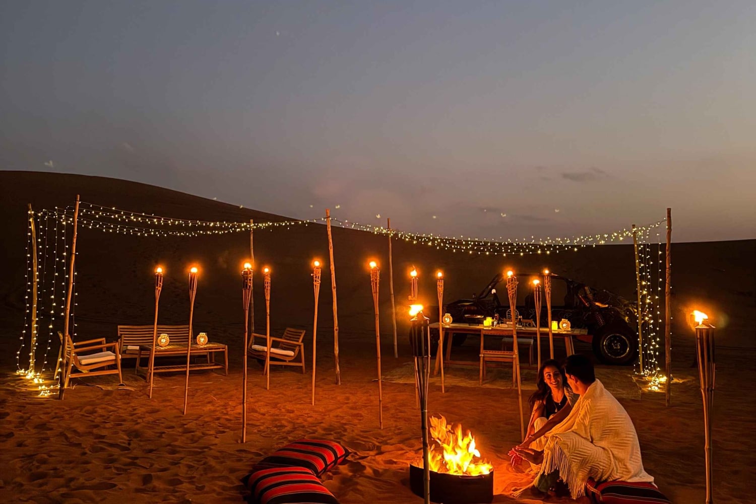 Opplev magien ved en privat middag i hjertet av Mleiha-ørkenen. Nyt et deilig måltid under stjernene, omgitt av den fantastiske naturen i dette historiske området som står på UNESCOs verdensarvliste.