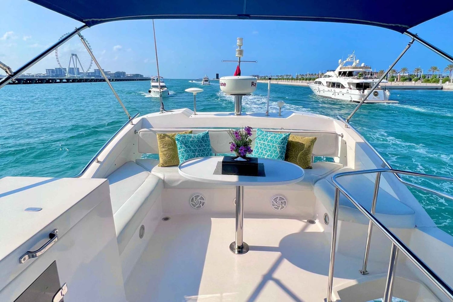 Rejs rozpoczyna się z przystani w Dubaju i zaczyna się zabawa. Możesz popływać panoramicznym kanałem mariny w Dubaju, wyspą Blue Water i Jbr, renomowanymi hotelami, takimi jak The Atlantis Palm.
