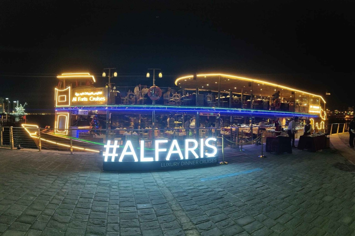Ciesz się luksusowym rejsem z kolacją, a potem zobacz fascynujący pokaz akrobatyczny w La Perle, show nr 1 w Dubaju. Zobacz słynne miejsca z wody