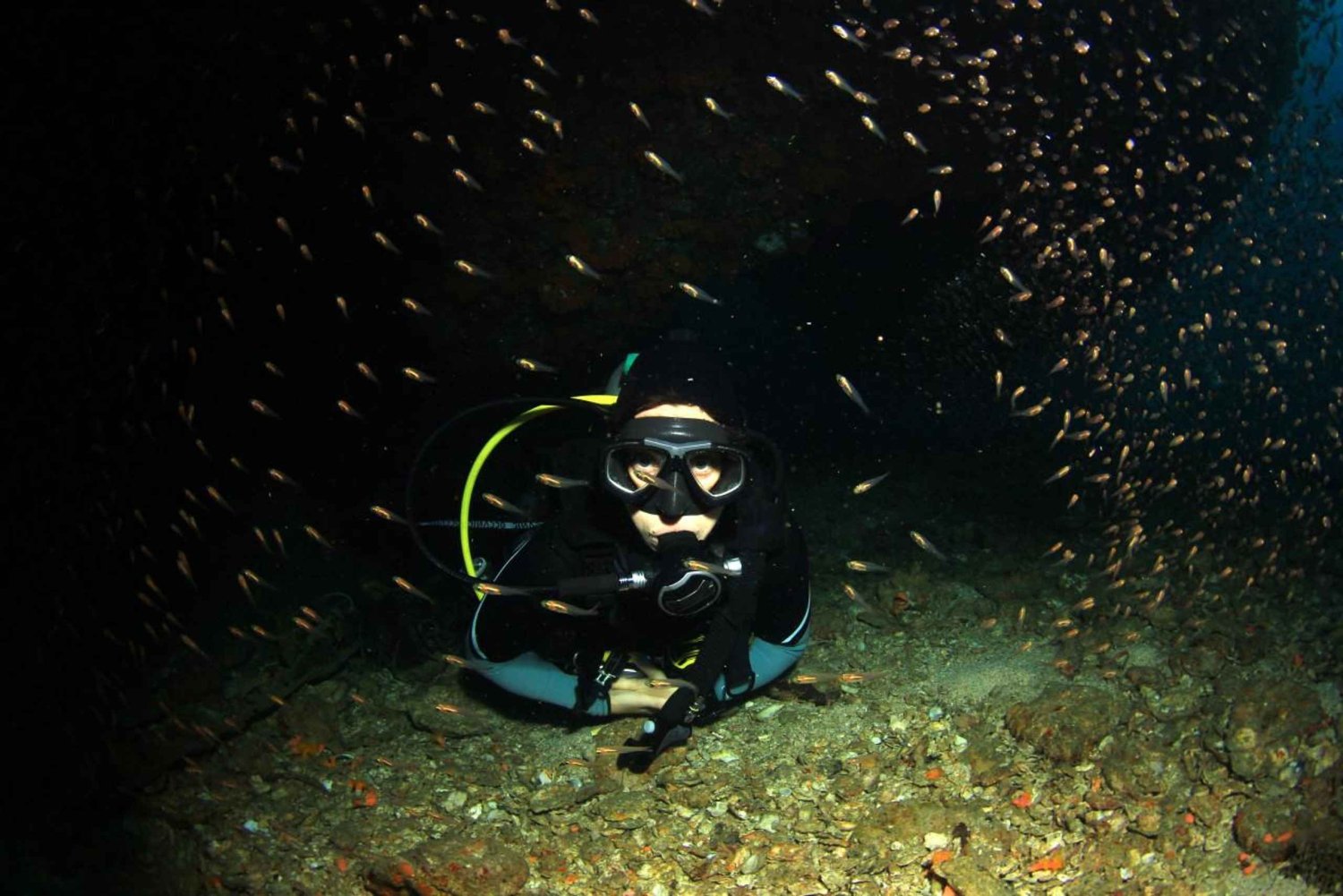Descobre a magia do mundo subaquático em Fujairah com dois mergulhos panorâmicos à tarde e um emocionante mergulho noturno - com transporte para o Dubai e uma refeição ligeira de churrasco.