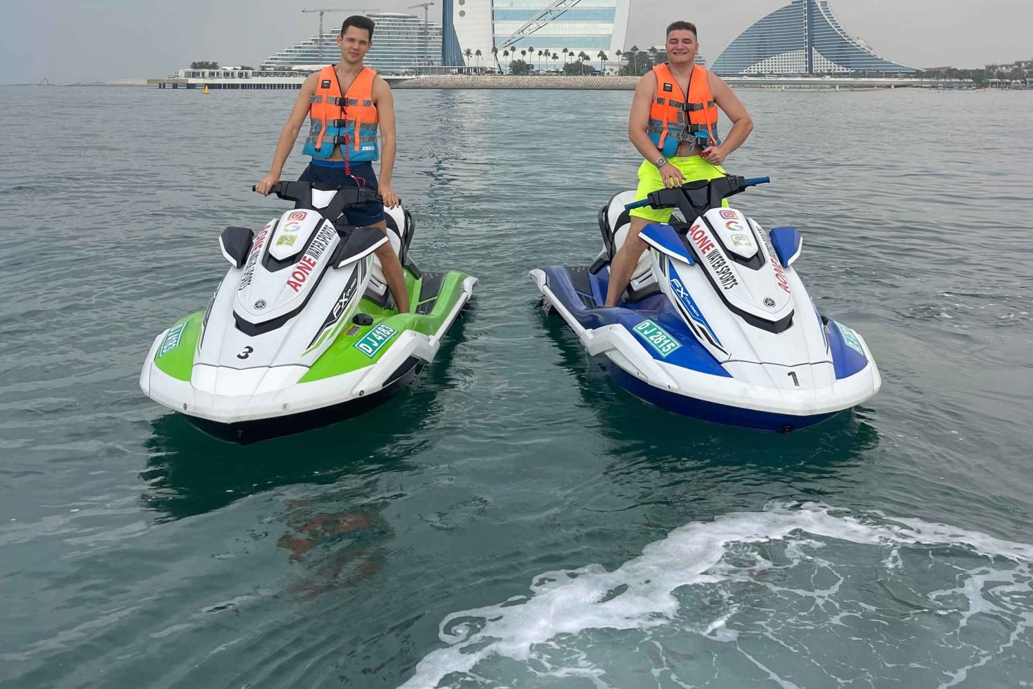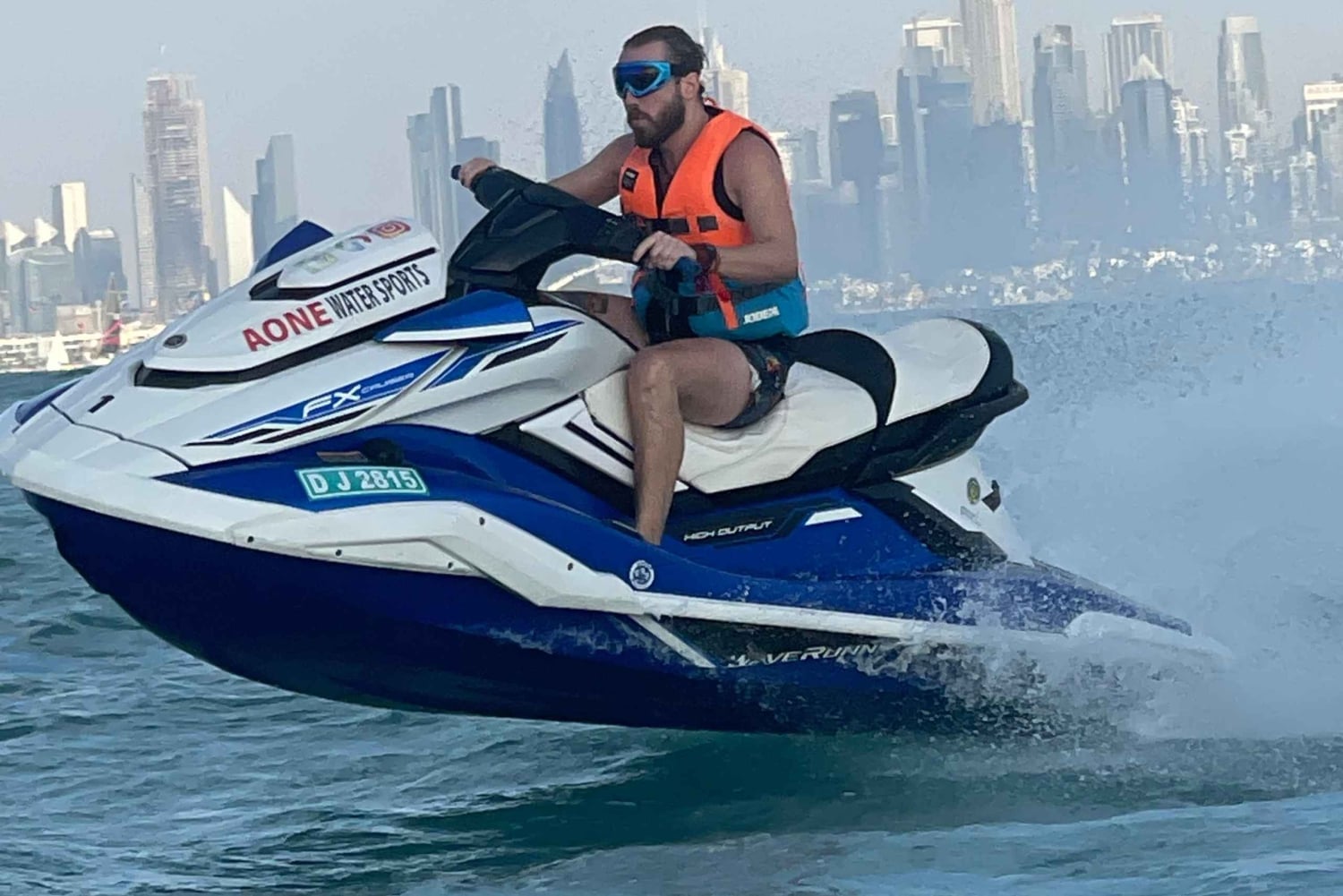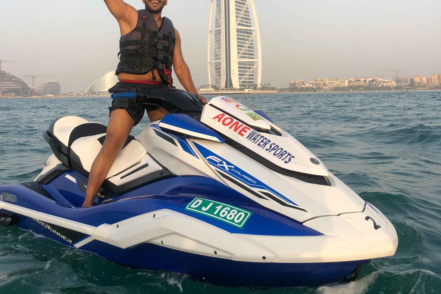 Desfruta de um cruzeiro ao longo da costa do Dubai enquanto conduzes um jet ski. Admira o Burj Khalifa, Burj Al Arab, quer estejas a conduzir sozinho ou com um amigo.
