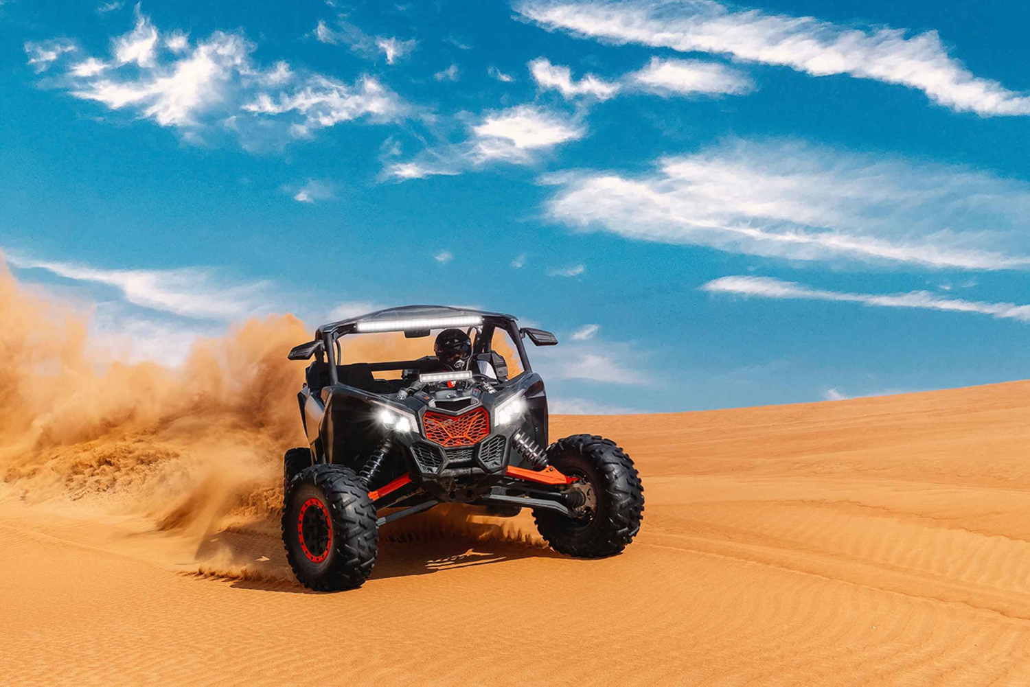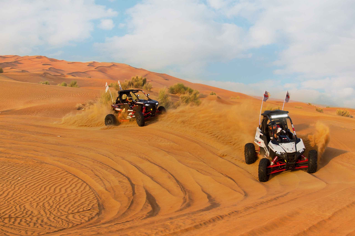 Conduz um buggy personalizado com tração às quatro rodas e explora as melhores áreas de deserto e montanha a partir do Dubai. Conduz até algumas das maiores dunas dos EAU, incluindo Big Red, Pink Rock, Fossil Rock e muito mais.