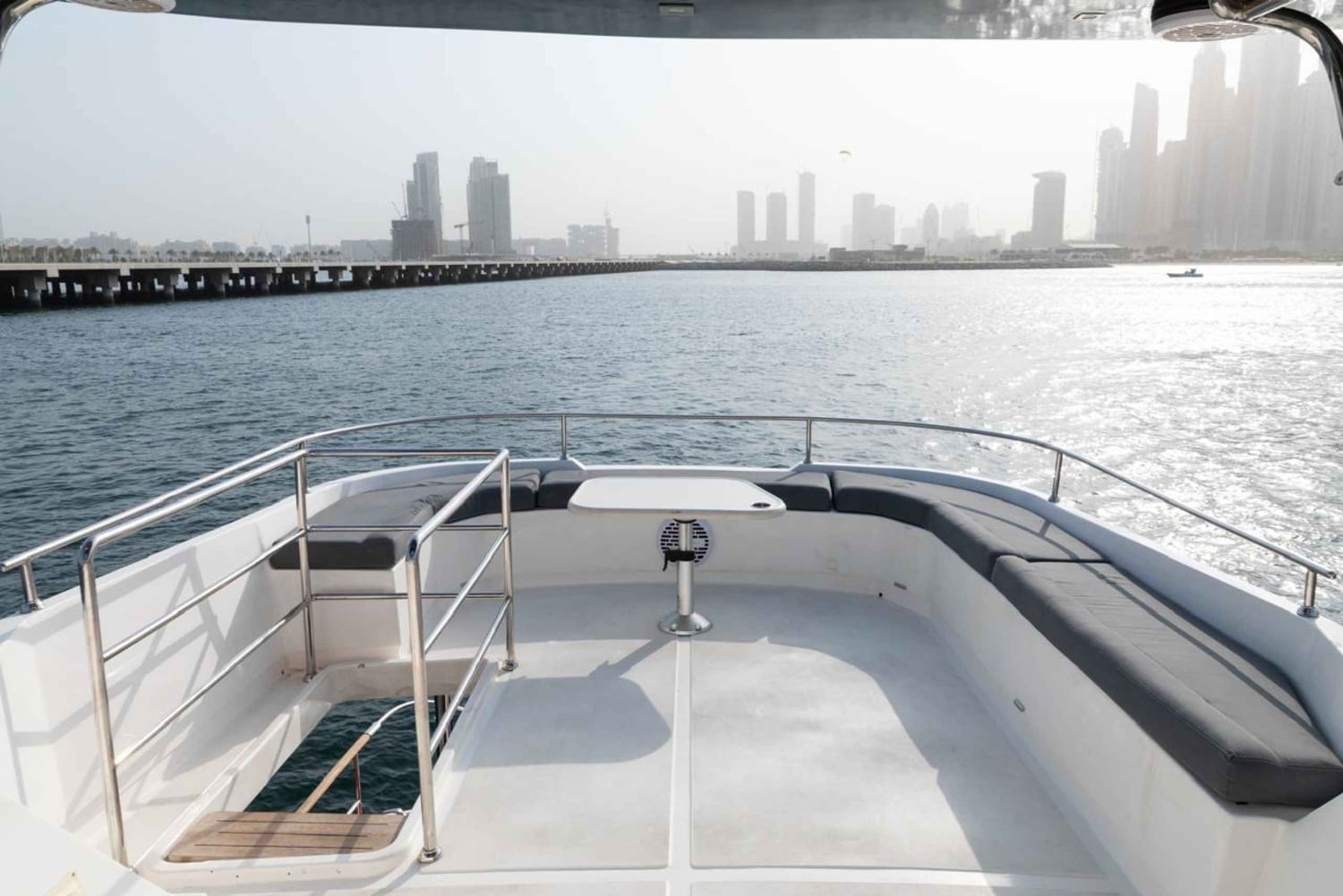 Embarque numa aventura de iate privado pelas águas deslumbrantes do Dubai, perfeita para até 15 pessoas. Ideal para celebrações em família, eventos corporativos ou uma escapadela romântica ao pôr do sol