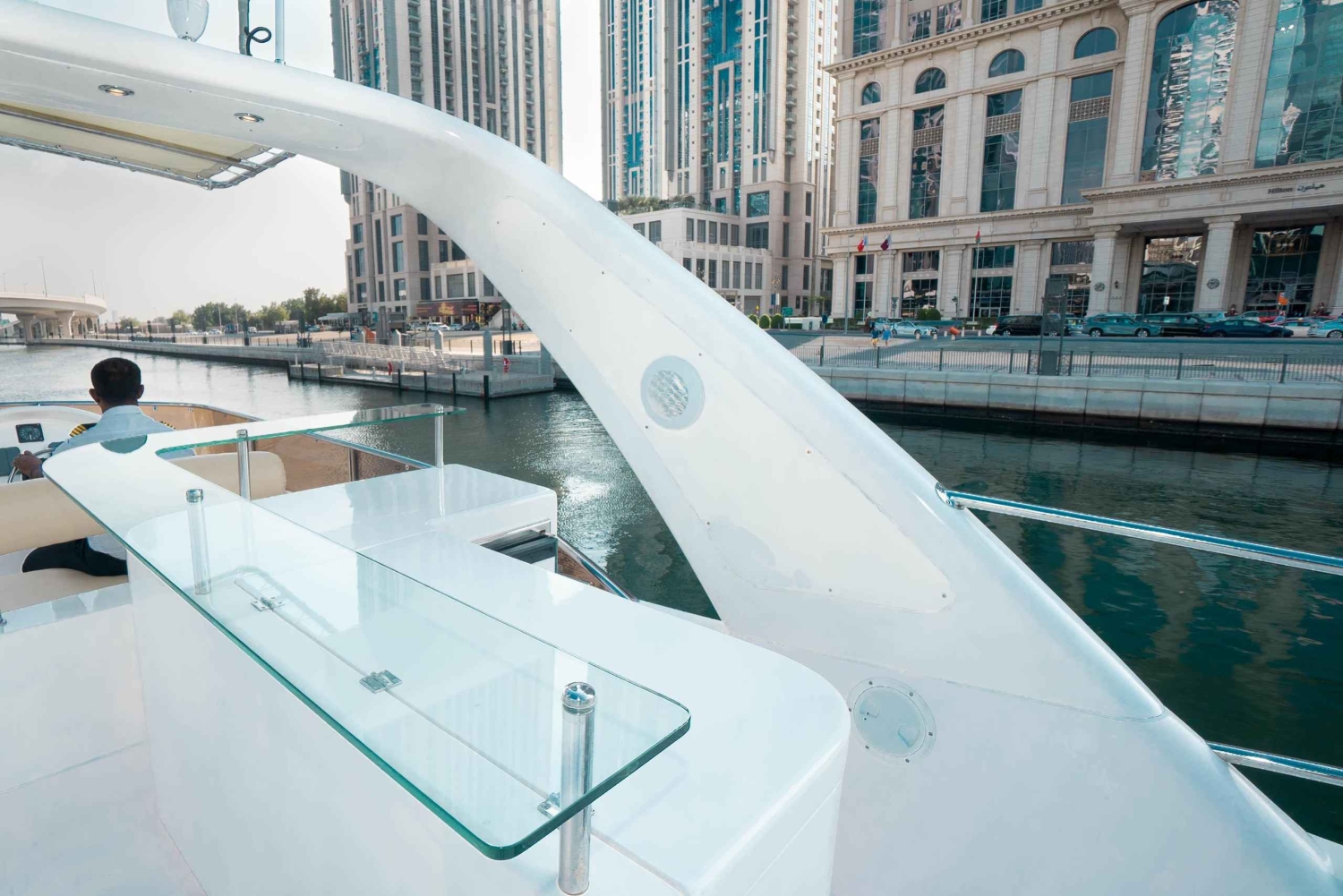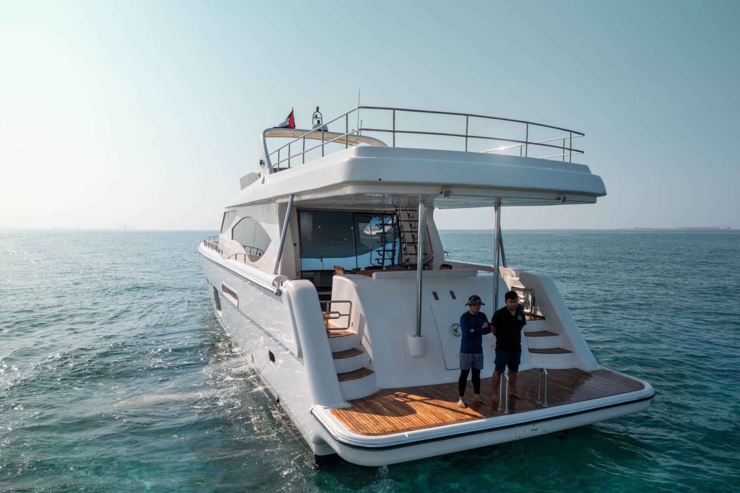 Den lyxiga 85-fotsyachten vid D-marin, Marasi Bay Marina, rymmer upp till 50 gäster med förstklassiga bekvämligheter och besättning. Kryssa till ikoniska platser i Dubai som marina, Atlantis och Burj Al Arab. Boka nu.