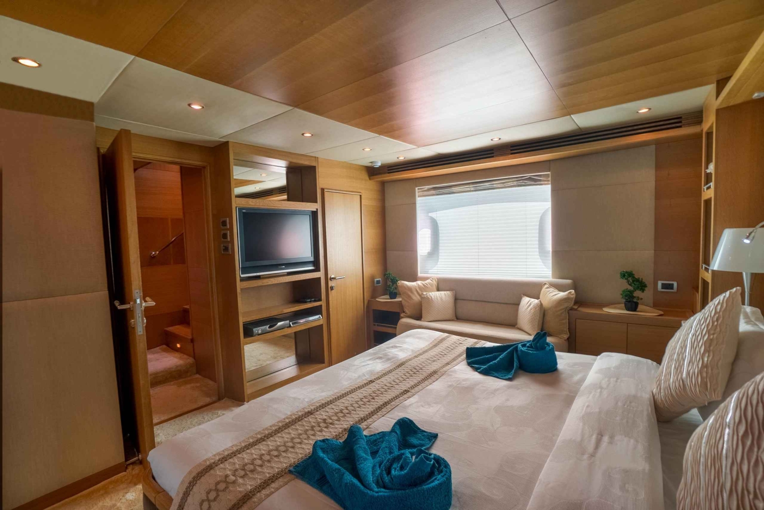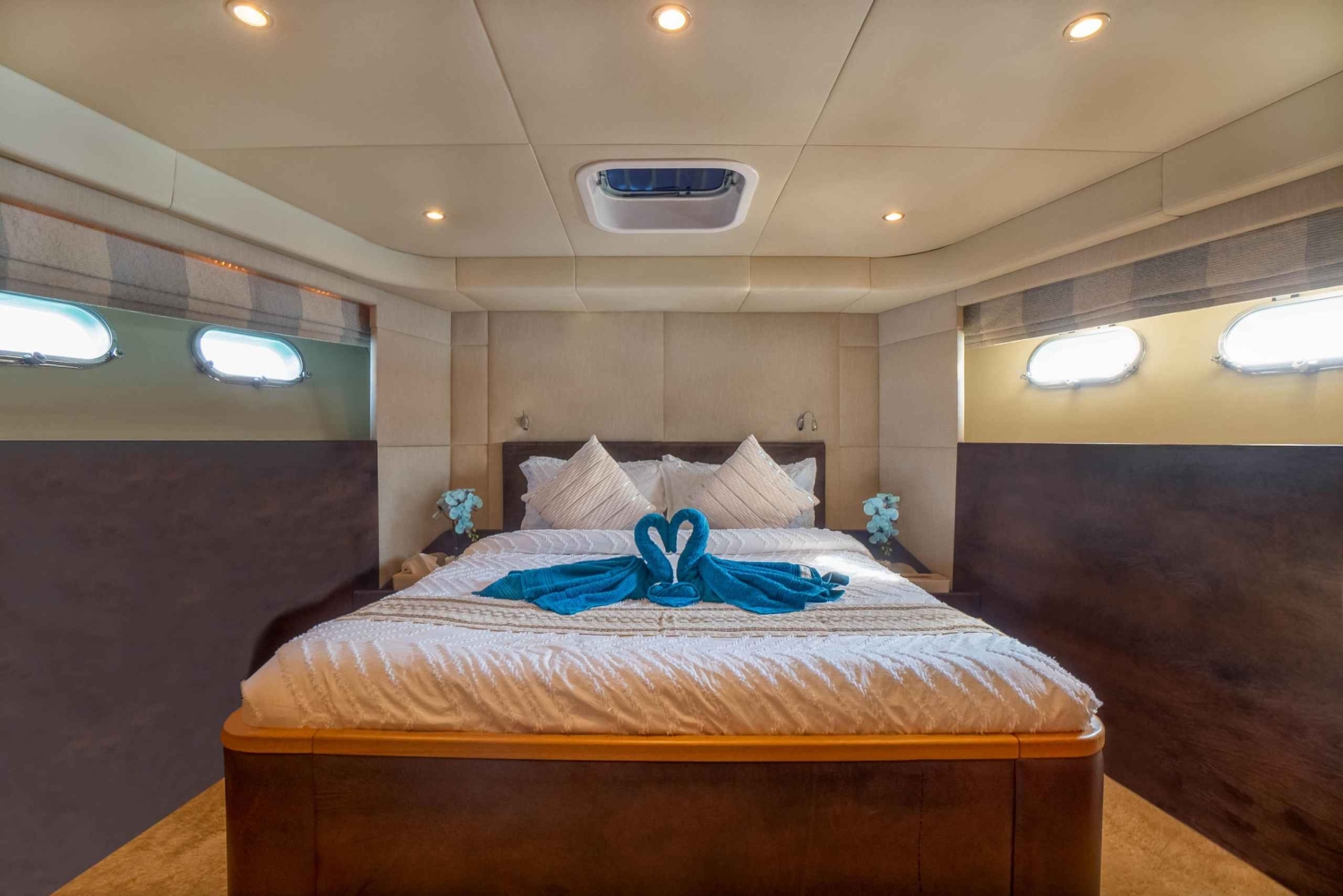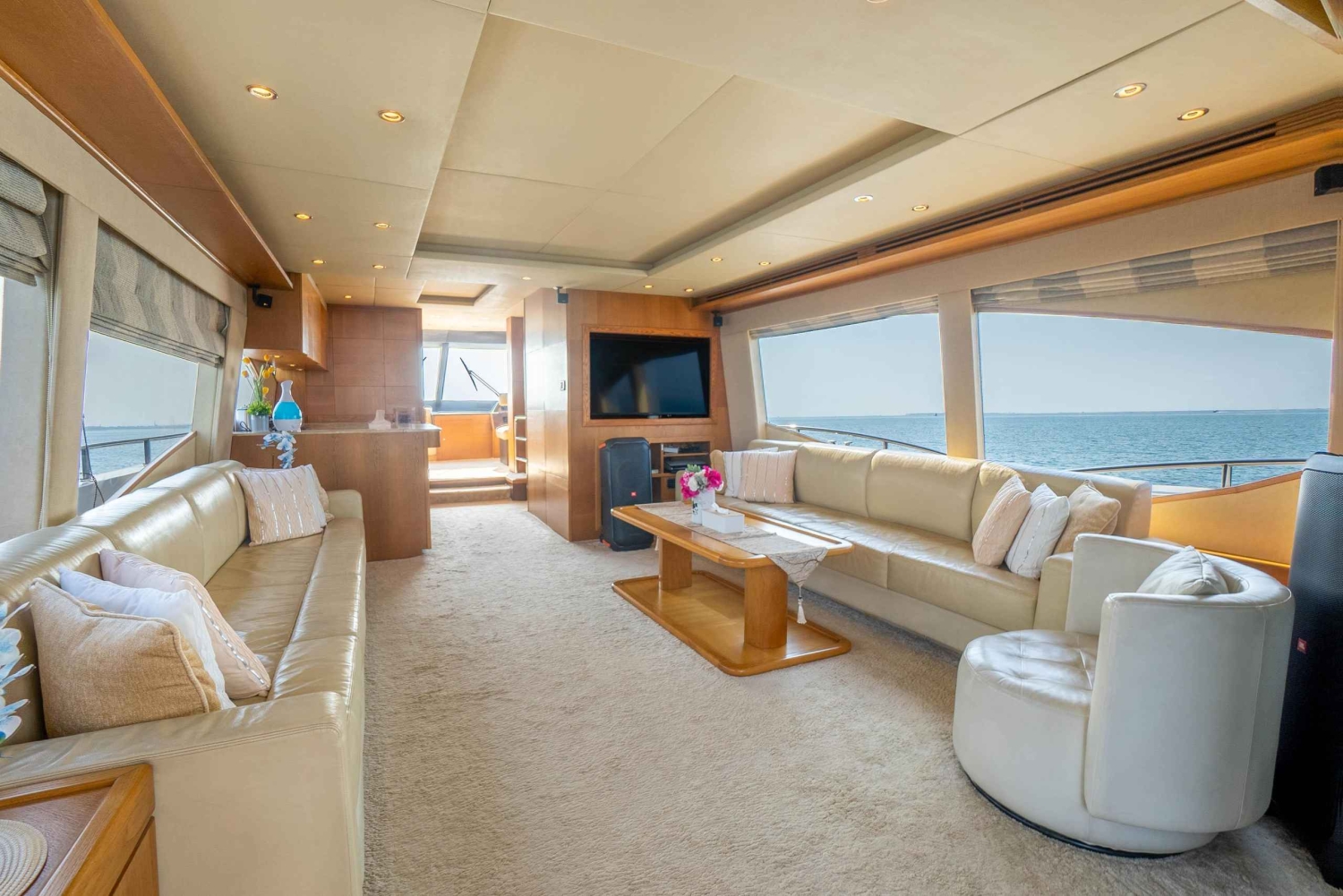 Den magnifika 85-fotsyachten erbjuder en exceptionell lyxupplevelse, perfekt för privata sammankomster, företagsevenemang eller familjeutflykter. Denna rymliga yacht är designad med precision och har eleganta, halkfria däck för säkerhet, en sofistikerad interiör med eleganta salonger och flera välmöblerade hytter för ultimat komfort. Det stora däckområdet erbjuder en fantastisk utsikt över Dubais ikoniska silhuett, vilket gör det till ett idealiskt val för dagskryssningar, solnedgångsutflykter eller natturer. Den är utrustad med ett toppmodernt Bluetooth-musiksystem som garanterar underhållning utan avbrott, medan den professionella besättningen tillgodoser alla dina behov och garanterar en oförglömlig resa. Denna 85 fot långa yacht ligger förtöjd i D-Marin, Marasi Bay Marina, och rymmer upp till 50 gäster, vilket gör den perfekt för både intima och stora sammankomster. Gästerna kan njuta av förstklassiga bekvämligheter, inklusive ett fullt utrustat kök, en rymlig matplats och gratis kaffe, te, läsk och vatten. Oavsett om du anordnar en glamorös fest, firar en speciell tillställning eller bara vill koppla av på öppet hav, lovar denna yacht en minnesvärd upplevelse med Dubais oöverträffade skönhet som bakgrund. Boka din yacht i Dubai