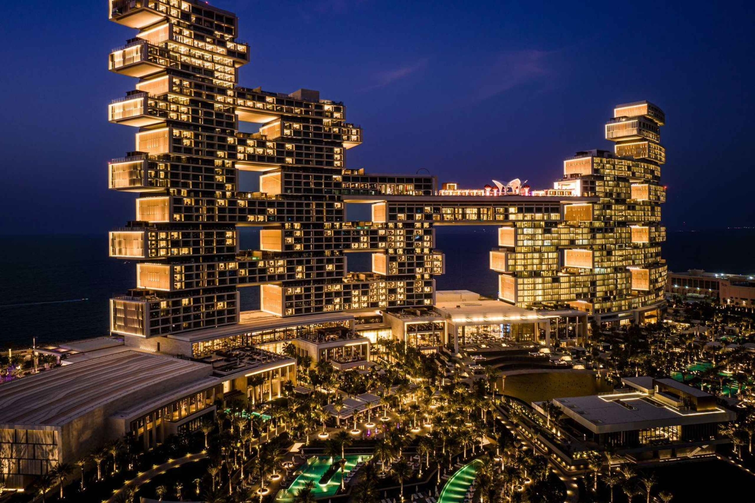 Fortsätt ditt äventyr till den ikoniska Palm Jumeirah, ett tekniskt underverk prydd med lyxiga resorter och fantastisk utsikt. När natten faller på kan du njuta av en fängslande dans av vatten och ljus vid foten av Burj Khalifa. Avsluta din tur med bekväm avlämning vid Dubai Mall, där du kan fortsätta ditt nattliga äventyr och återvända till ditt hotell på egen hand.